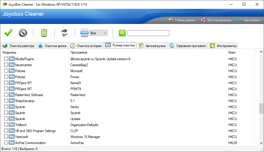- Поддержка ручного редактирования реестра и фильтрации ненужных записей