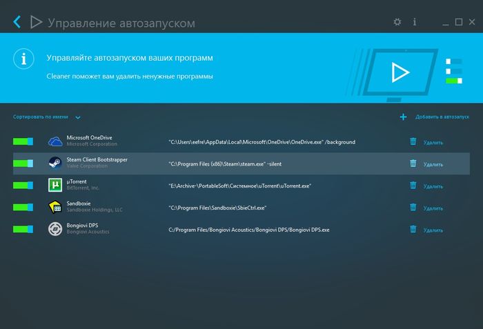 - Редактирование автозагрузки и управление стартующими при загрузке программы