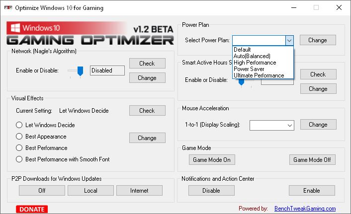 Программа Optimize Windows 10 for Gaming 1.2 Beta предназначена для настройки операционной системы с учётом требований современных игр, позволяя перераспределить ресурсы системы в пользу производительности и стабильности во время игрового процесса. Инструмент помогает быстро изменить ключевые параметры Windows, отвечающие за сеть, питание, графику и фоновые службы, чтобы обеспечить более плавный геймплей. Подходит для пользователей, которые хотят вручную оптимизировать систему без установки дополнительных сервисов.