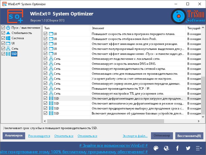 WinExt System Optimizer разработан компанией TriSun Software Inc как бесплатное решение для улучшения работы компьютера под управлением современных версий Windows. Объём утилиты составляет всего 864 КБ, что делает её одной из самых компактных в категории системных оптимизаторов. Несмотря на небольшой размер, программа включает в себя функционал для анализа и устранения различных проблем, влияющих на производительность.
