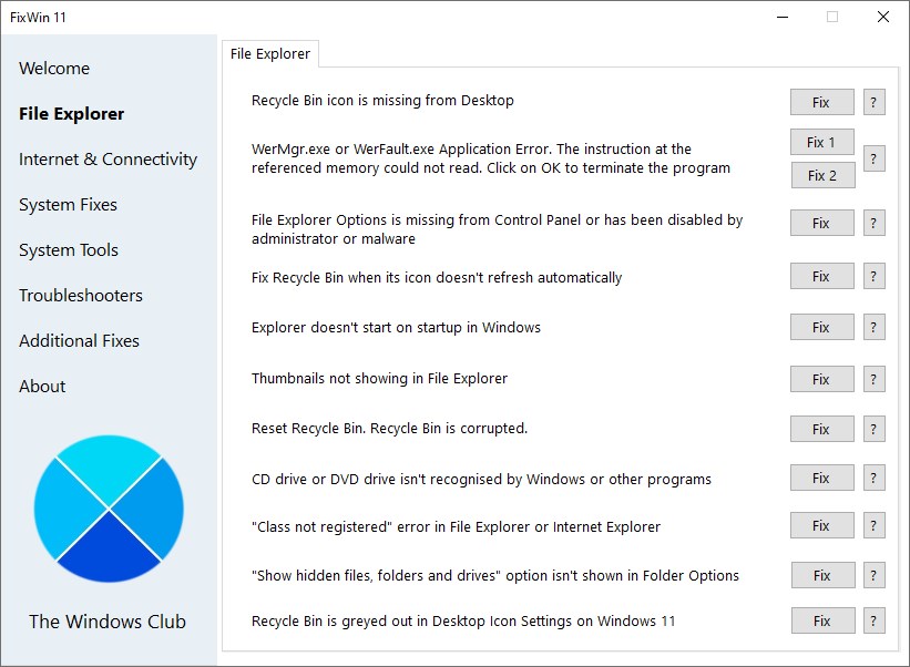 FixWin 11 11.2 — это компактная и эффективная утилита для восстановления работоспособности ОС Windows 11, устраняющая типичные сбои и ошибки интерфейса, системных компонентов и параметров настройки. Программа помогает вернуть в строй проводник, панель задач, центр уведомлений, контекстное меню и другие важные элементы операционной системы. Скачать FixWin 11 можно бесплатно с официального сайта, и хотя он не поддерживает русский язык, его функционал остаётся доступным благодаря интуитивной структуре.