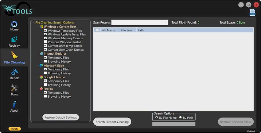 Использование WTools не требует специальных знаний. После запуска приложения пользователь видит панель, разделённую на блоки функций: реестр, файлы, обновления, обслуживание. Для начала очистки реестра необходимо выбрать соответствующий модуль, который ищет устаревшие или неверные записи, потенциально приводящие к ошибкам. Модуль очистки файлов позволяет указать, какие именно данные подлежат удалению — временные файлы браузеров, кэш, историю посещений и другие категории. Функция «Repair Windows System Files» запускает проверку через встроенную утилиту DISM, сравнивая текущие системные файлы с эталонными, а при необходимости — восстанавливает их. Также доступна возможность сжатия папки WinSxS, что может освободить значительное количество места на системном диске. Управление обновлениями Windows реализовано через простой переключатель, что особенно полезно при необходимости отложить установку патчей.