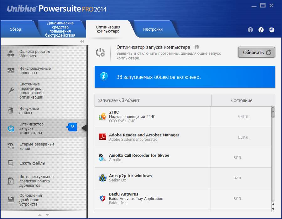 - Модуль SpeedUpMyPC занимается управлением ресурсов, освобождением оперативной памяти и сокращением времени загрузки Windows.