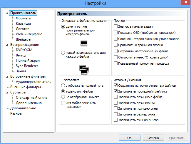 - Предусмотрена гибкая настройка горячих клавиш, субтитров и визуальных эффектов