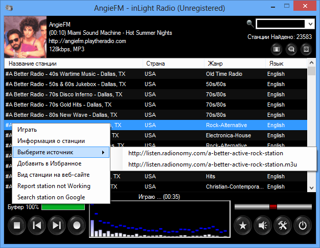 InLight Radio 1.5.0.0 разработана компанией inLight Software Solutions как удобный инструмент для любителей интернет-радио. Программа предоставляет доступ к более чем 25000 радиостанций, охватывая различные жанры музыки, новости, спортивные трансляции и разговорные шоу. Поддержка множества языков включает русский интерфейс, что делает приложение доступным для широкого круга пользователей.