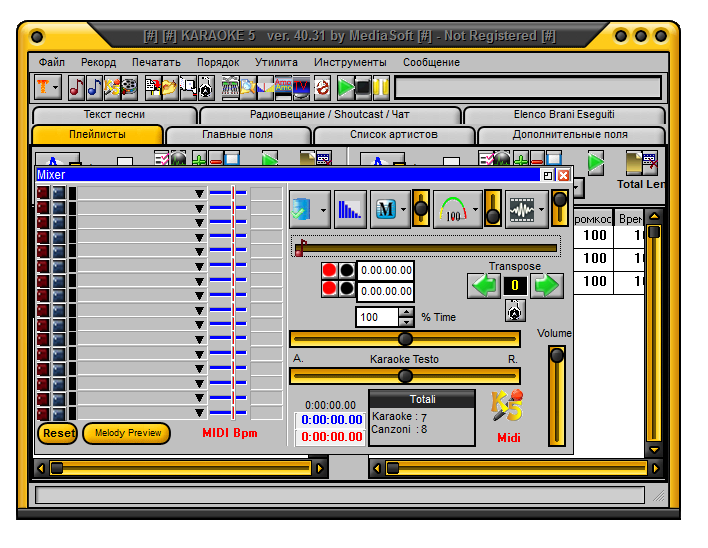 Программа Karaoke 5 44.13 разработана компанией Mediasoft и позиционируется как одно из самых универсальных решений в категории караоке-плееров с расширенными возможностями редактирования. Она поддерживает широкий спектр аудиоформатов, включая midi, kar и MP3, позволяя не только воспроизводить фонограммы, но и глубоко взаимодействовать с ними. Одним из ключевых достоинств является встроенный микшер, с помощью которого можно управлять отдельными каналами, изменять темп, регулировать тональность и вырезать вокал. Это особенно полезно для пользователей, которые хотят создавать или адаптировать собственные караоке-треки под конкретные нужды.