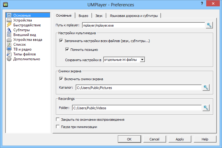 Работа с UMPlayer