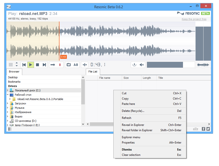 Программа демонстрирует высокую производительность и предсказуемое поведение в различных сценариях использования. Resonic особенно хорош при работе с большими библиотеками, так как не замедляется даже при загрузке тысяч файлов. Пользователь может управлять аудиофайлами напрямую через интерфейс, используя стандартные операции: копирование, вставка, удаление — как в обычном проводнике. Дополнительным преимуществом является поддержка портативного режима, позволяющего запускать плеер с флеш-накопителя без необходимости установки или активации. Это делает его идеальным выбором для использования на разных компьютерах без оставления следов в системе.