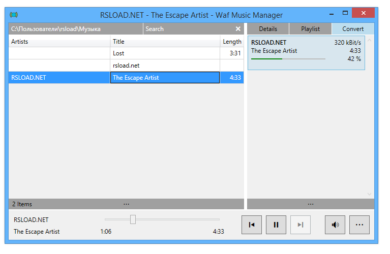 Waf Music Manager 2.0.0.100 — это легковесный музыкальный плеер с функциями редактора тегов и менеджера аудиофайлов, способный работать с MP3 и WMA, управлять плейлистами, конвертировать треки и обеспечивать быстрый доступ к музыкальной коллекции без нагромождения лишних элементов интерфейса.