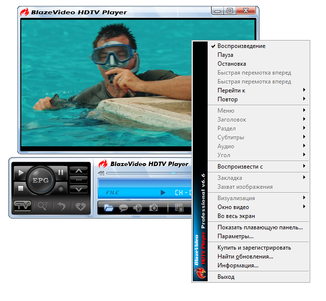 BlazeVideo HDTV Player Professional предоставляет универсальное решение для воспроизведения видеофайлов, просмотра телевещания и записи эфира. Программа совместима с различными источниками сигнала — от файлов на жёстком диске до подключения цифрового телевизионного тюнера. Поддержка DVD позволяет не только воспроизводить диски, но и управлять главами, переключать дорожки и субтитры, как на обычном проигрывателе. Разработчик — компания BlazeVideo Inc — внедрил широкий функционал в интуитивно понятный интерфейс, адаптированный для русскоязычных пользователей.