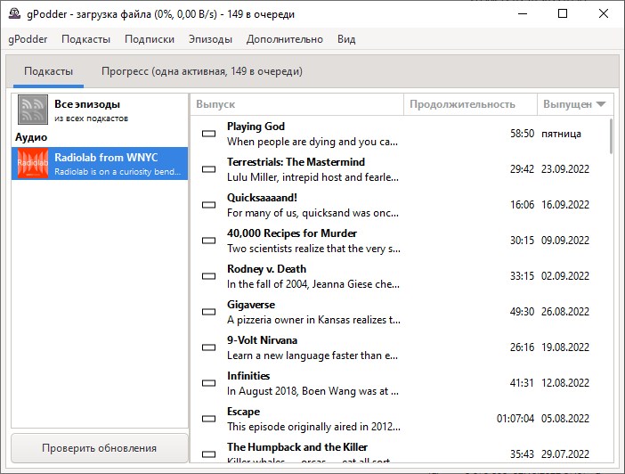 Работа с gPodder