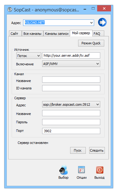 Работа с SopCast