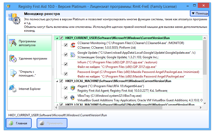 Registry First Aid Platinum представляет собой специализированное решение для обслуживания системного реестра Windows. Софт осуществляет тщательное сканирование, выявляя записи, указывающие на несуществующие файлы, удалённые программы или повреждённые ключи. Утилита способна работать как в ручном, так и в автоматическом режиме, что делает её удобной как для новичков, так и для опытных пользователей. Программа поддерживает создание резервных копий перед внесением изменений, что гарантирует безопасность системы в случае ошибки.