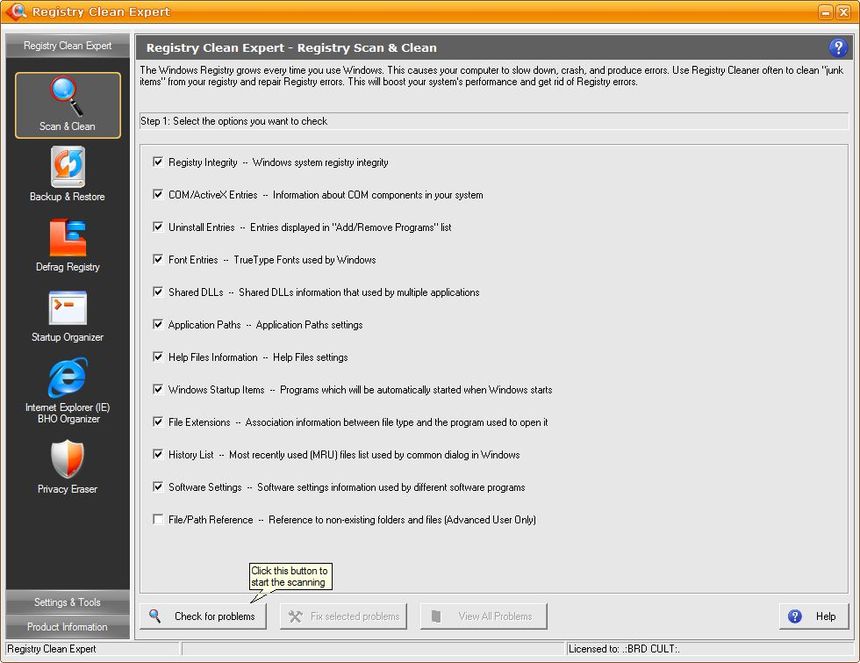 Работа с Registry Clean Expert
