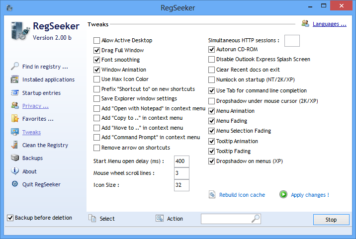 RegSeeker представляет собой инструмент для диагностики и обслуживания системного реестра. Утилита помогает повысить производительность компьютера за счёт удаления недействительных записей, остатков удалённых программ, дублирующихся ссылок и прочего мусора. Программа отличается минималистичным интерфейсом и продуманной структурой меню, что позволяет как новичкам, так и продвинутым пользователям эффективно работать с системными настройками. RegSeeker поддерживает мультиязычный интерфейс, однако полная локализация на русский язык отсутствует, что может затруднить восприятие у некоторых пользователей.