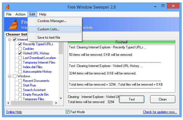 Free Window Sweeper 2.8.0 создана командой FindSth Software как бесплатное решение для тех, кто заботится о собственной конфиденциальности при работе за компьютером. Утилита позволяет быстро удалить данные, накапливающиеся во время сессий: от следов просмотренных страниц до списков последних запущенных программ. С её помощью можно стереть историю поиска, содержимое временных папок Windows, а также информацию, сохранённую различными веб-обозревателями. Программное обеспечение не требует установки и работает на всех актуальных версиях Windows, занимая всего 1.02 мегабайта на жёстком диске.