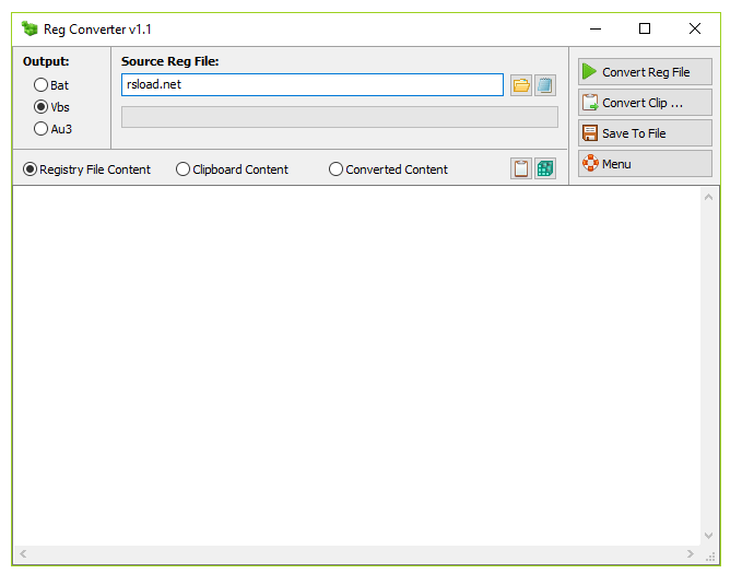 - Преобразует reg-файлы в bat, vbs и au3 форматы для автоматического выполнения