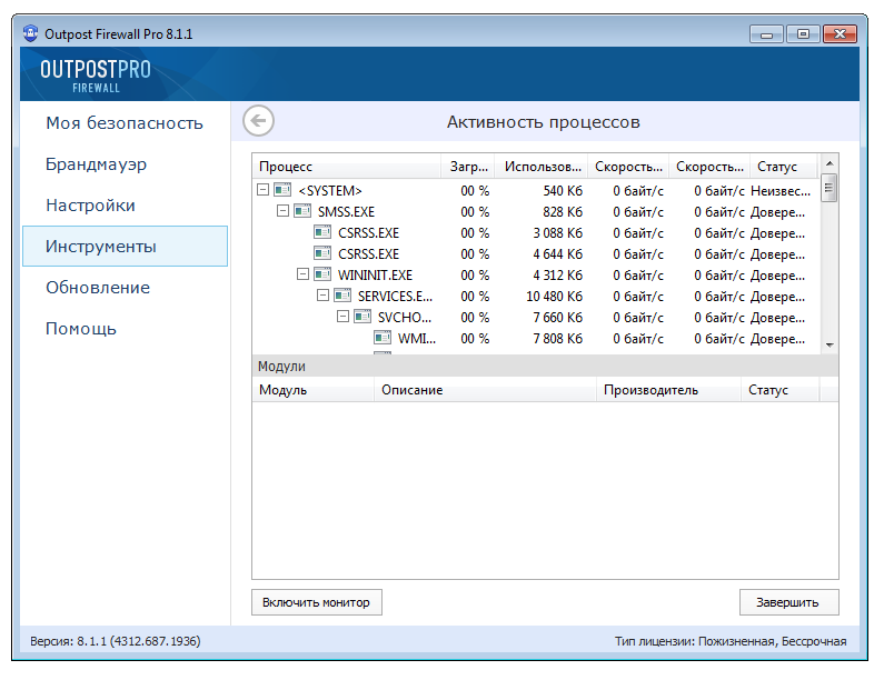 Особенностью Agnitum является его способность работать в фоновом режиме с минимальным влиянием на производительность системы, что особенно ценно при эксплуатации на средних и слабых конфигурациях.
