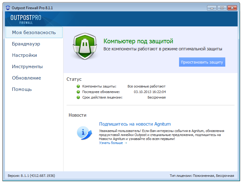 Скачать Agnitum Outpost Firewall Pro 9.3 (4934.708.2079 ) + x64