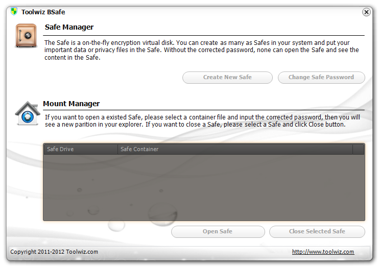 Toolwiz BSafe 1.6.0.0 — бесплатная утилита для защиты конфиденциальных данных с помощью шифрования на виртуальном диске, работающая в реальном времени и обеспечивающая надёжную защиту персональной информации.