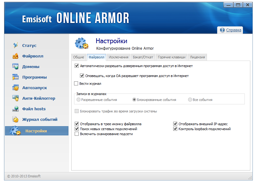 Работа с Online Armor Firewall