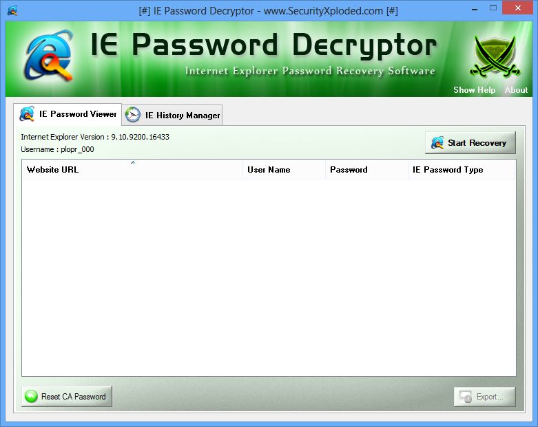 IE Password Decryptor v8.0 разработана специалистами компании SecurityXploded и предназначена для извлечения сохранённых учётных данных из Internet Explorer. Программа использует встроенные механизмы распознавания версии браузера и применяет соответствующие методы дешифрования. Такой подход обеспечивает высокую точность и скорость восстановления информации. Утилита поддерживает как стандартные формы входа на сайты, так и защищённые области, требующие HTTP-аутентификации.