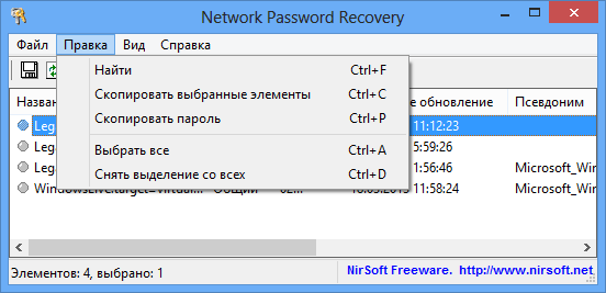 Работа с Network Password Recovery