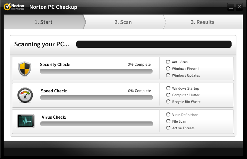Работа с Norton PC Checkup
