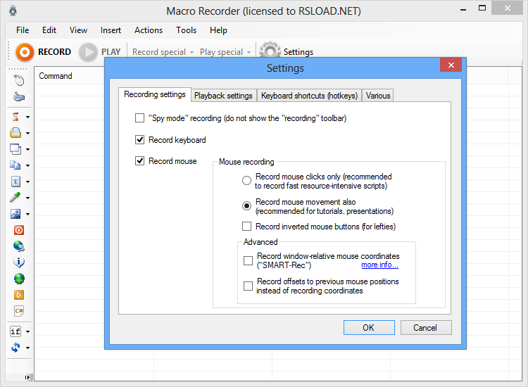 - Возможность привязки любого сочетания клавиш к запуску макроса, включая использование мыши и комбинаций клавиш
