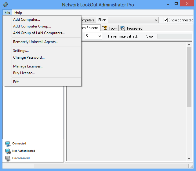 Network LookOut Administrator Professional 5.3.7 — это мощное программное решение для удалённого наблюдения и управления компьютерами в локальной или глобальной сети. С его помощью администратор может в реальном времени отслеживать активность пользователей, управлять их системами, передавать файлы и блокировать недопустимые приложения. Программа поддерживает работу в 64-битной среде и предоставляет широкие возможности для администрирования сетевой инфраструктуры.