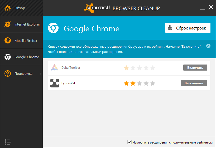 Работа с avast! Browser Cleanup