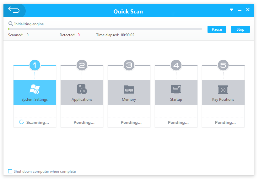 - Три режима проверки системы: быстрый, полный и пользовательский.