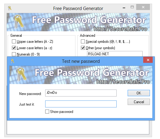 Free Password Generator – это компактная и удобная утилита, предназначенная для быстрого создания надежных паролей с настраиваемыми параметрами. Программа позволяет генерировать комбинации символов, цифр и специальных знаков за секунды, обеспечивая высокий уровень защиты при минимальных усилиях. Поддержка портативной версии делает её универсальным инструментом для использования на разных устройствах без установки. Благодаря простому интерфейсу, даже начинающий пользователь без труда освоит все функции и начнёт создавать сложные пароли, которые практически невозможно взломать.
