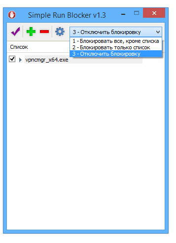 - Три режима фильтрации: отключение контроля, блокировка только перечисленных приложений и разрешение только определённых программ (режим белого списка).