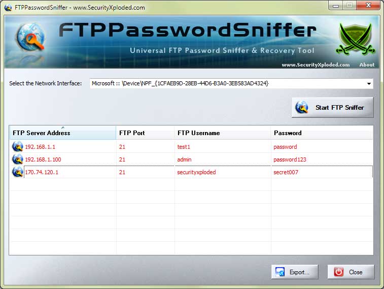Работа с FTPPasswordSniffer