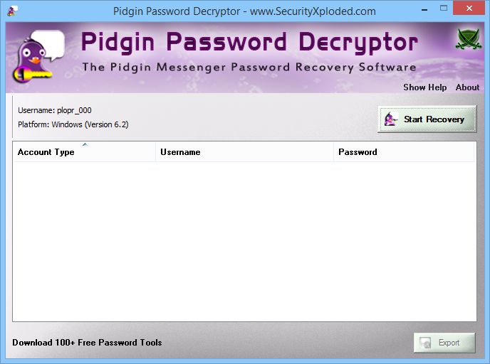 - Автоматическое обнаружение установленной версии Pidgin и местоположения файлов с паролями