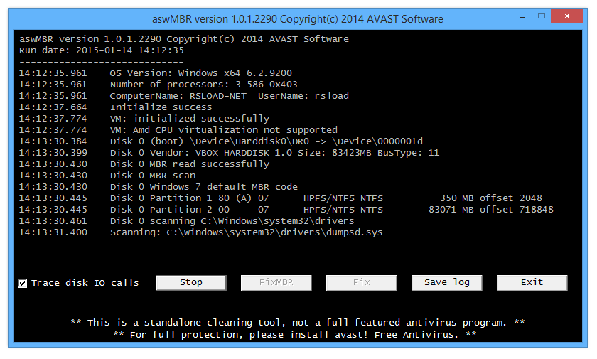Работа с Avast aswMBR
