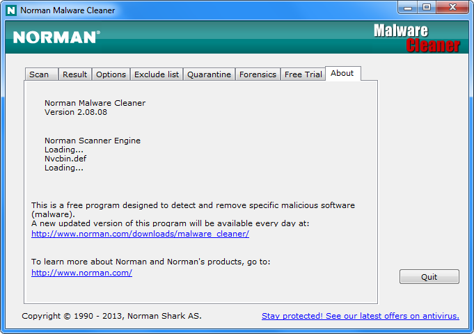 Norman Malware Cleaner — бесплатная утилита для поиска и удаления вредоносных программ, включая вирусы, трояны, руткиты и ложные антивирусы. Программа не работает в фоновом режиме, но эффективно справляется с угрозами при ручном запуске сканирования. Утилита портативна, не требует установки и подходит для использования на заражённых системах.