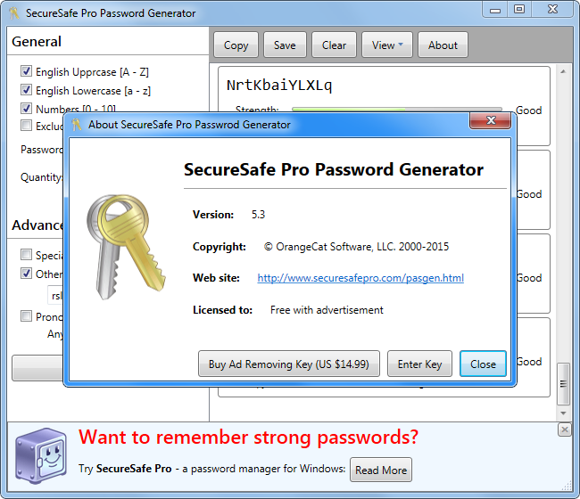 SecureSafe Pro Free Password Generator разработан для автоматического создания сложных паролей, устойчивых к взлому и подбору. Утилита предоставляет гибкие настройки формирования символьных последовательностей, включая использование различных наборов символов, регулировку длины и анализ уровня защищённости. Программа не требует подключения к интернету и работает автономно, что дополнительно повышает её безопасность.