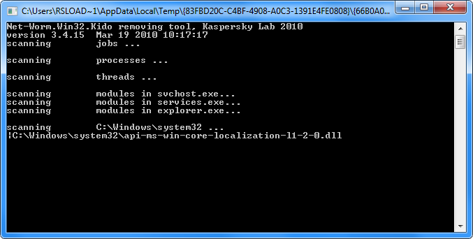 Запуск утилиты осуществляется через командную строку с правами администратора, что гарантирует доступ ко всем необходимым системным компонентам. После старта Kaspersky KidoKiller автоматически инициирует проверку системы на наличие следов инфицирования червём Net-Worm.Win32.Kido. Процесс сканирования проходит в фоне, не требуя участия пользователя, а при обнаружении вредоносных компонентов программа сразу же их удаляет или изолирует. Результаты проверки отображаются в текстовом виде, что позволяет понять, была ли система заражена и насколько серьёзным оказалось вмешательство.