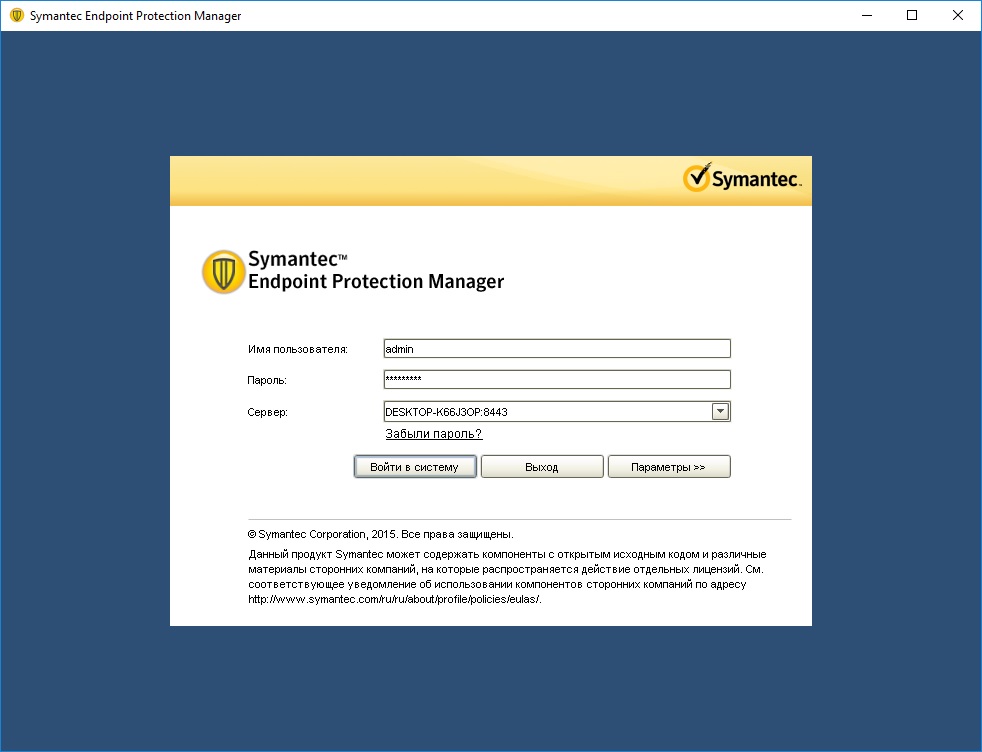 Работа с Symantec Endpoint Protection