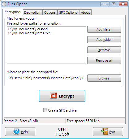 Files Cipher 2.1 представляет собой утилиту для шифрования личной и конфиденциальной информации. Программа ориентирована на пользователей, которым необходимо защитить данные от несанкционированного доступа. Основной функционал сосредоточен на обработке файлов и папок с последующим сохранением их в зашифрованном виде. Используемый алгоритм шифрования был разработан внутренней лабораторией FCsoft и применяется уже на протяжении нескольких лет. По заявлению разработчиков, этот cipher обладает высокой устойчивостью к взлому, что делает его подходящим решением для личного и профессионального использования.