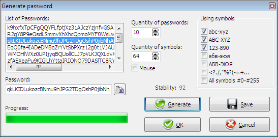 - Генерация сложных паролей с визуальной оценкой их надёжности