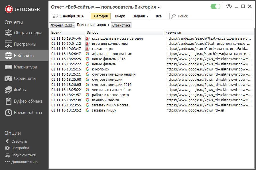 Программа JETLOGGER обеспечивает комплексный контроль за действиями на компьютере с возможностью гибкой настройки и доставки отчётов.