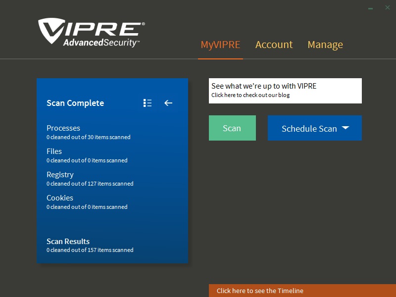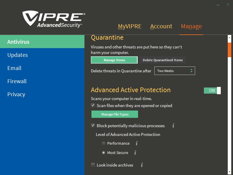 Интерфейс программы интуитивно понятен: после установки пользователь получает доступ к централизованной панели управления, где отображаются статус безопасности, текущие задачи и рекомендации. Регулярные проверки можно настроить по расписанию или запускать вручную, включая полное, выборочное и экспресс-сканирование. Встроенная утилита VIPRE Rescue Scanner позволяет проводить проверку системы до загрузки операционной системы, что особенно эффективно при обнаружении устойчивых вредоносных программ. Для корпоративных пользователей предусмотрены средства централизованного управления через консоль, интеграция с Active Directory и инструменты мониторинга угроз в реальном времени.
