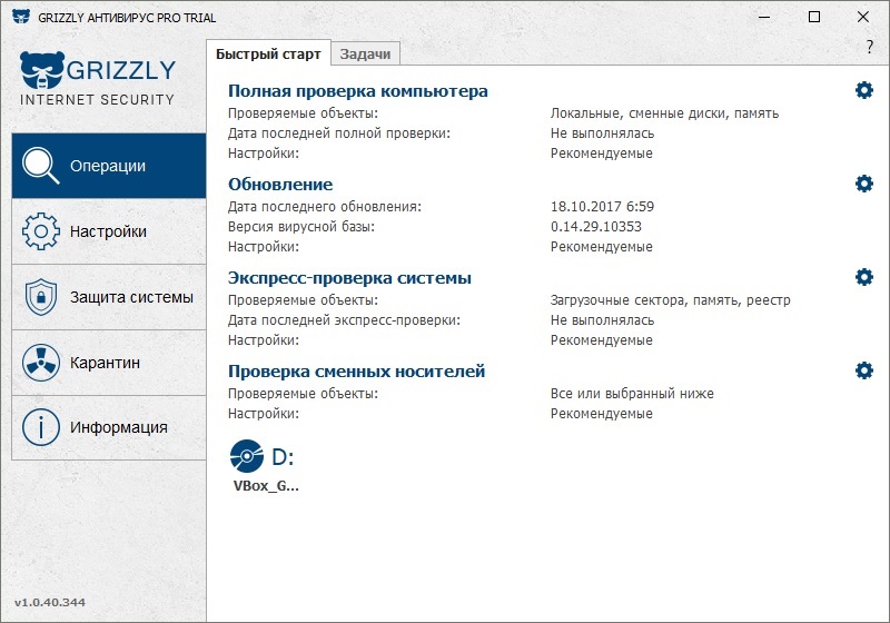 Работа с Grizzly Pro Антивирус