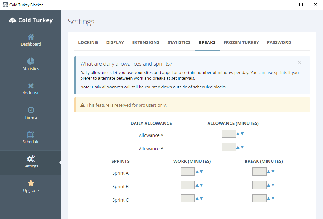 Когда активирован режим blocker, пользователь лишается возможности обойти ограничения, что делает Cold Turkey особенно эффективным для самоконтроля.
