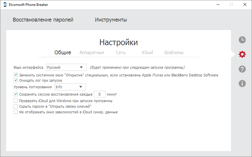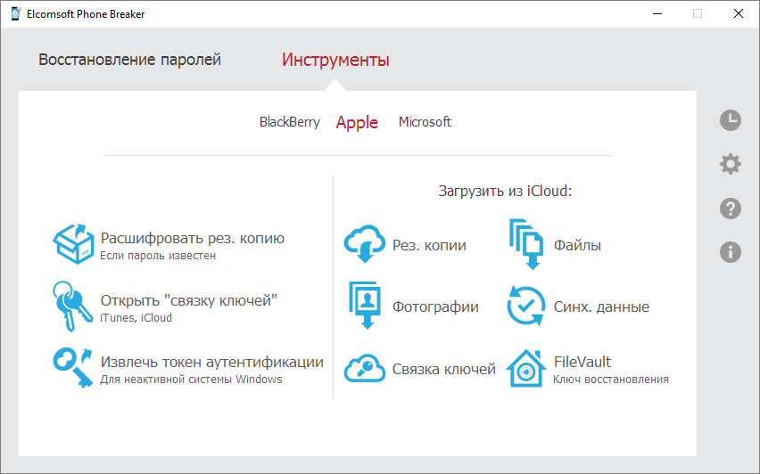 - Позволяет расшифровывать зашифрованные резервные копии iPhone и BlackBerry при наличии пароля