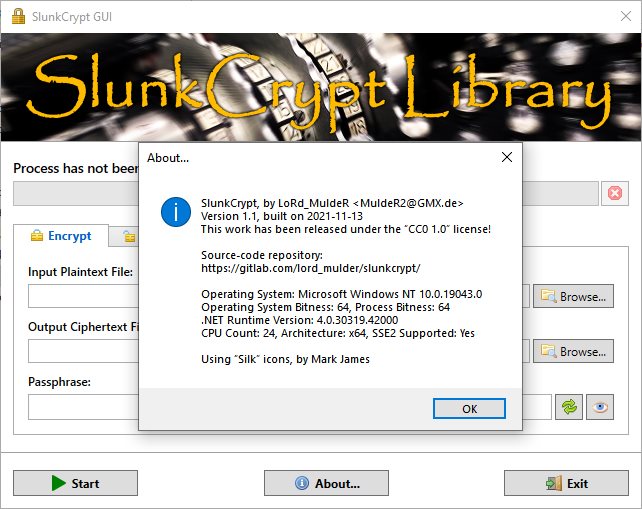 SlunkCrypt разработана как компактное решение для пользователей, которым необходимо быстро зашифровать отдельные файлы без необходимости использования сложных инструментов. Приложение не требует установки и может быть запущено с любого носителя, включая флеш-накопители. Его основная функция — защита данных с помощью пароля, что особенно актуально при хранении конфиденциальной информации на общих или незащищенных устройствах. Шифрование происходит локально, без передачи данных в сеть, что гарантирует полный контроль над процессом.