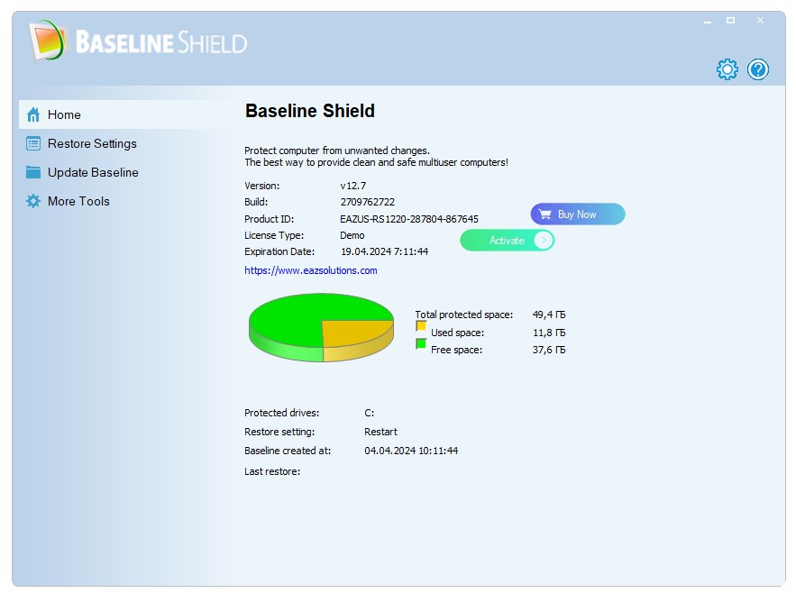 EAZ Solution Baseline Shield функционирует по принципу временной капсулы, сохраняя целостность системы на момент создания контрольной точки. Как только пользователь активирует защиту, программа фиксирует текущее состояние ОС — включая настройки, установленные приложения, файлы и параметры безопасности. После этого любые изменения, будь то установка новых программ, изменение реестра или скачивание подозрительных файлов, автоматически отменяются при следующей перезагрузке.